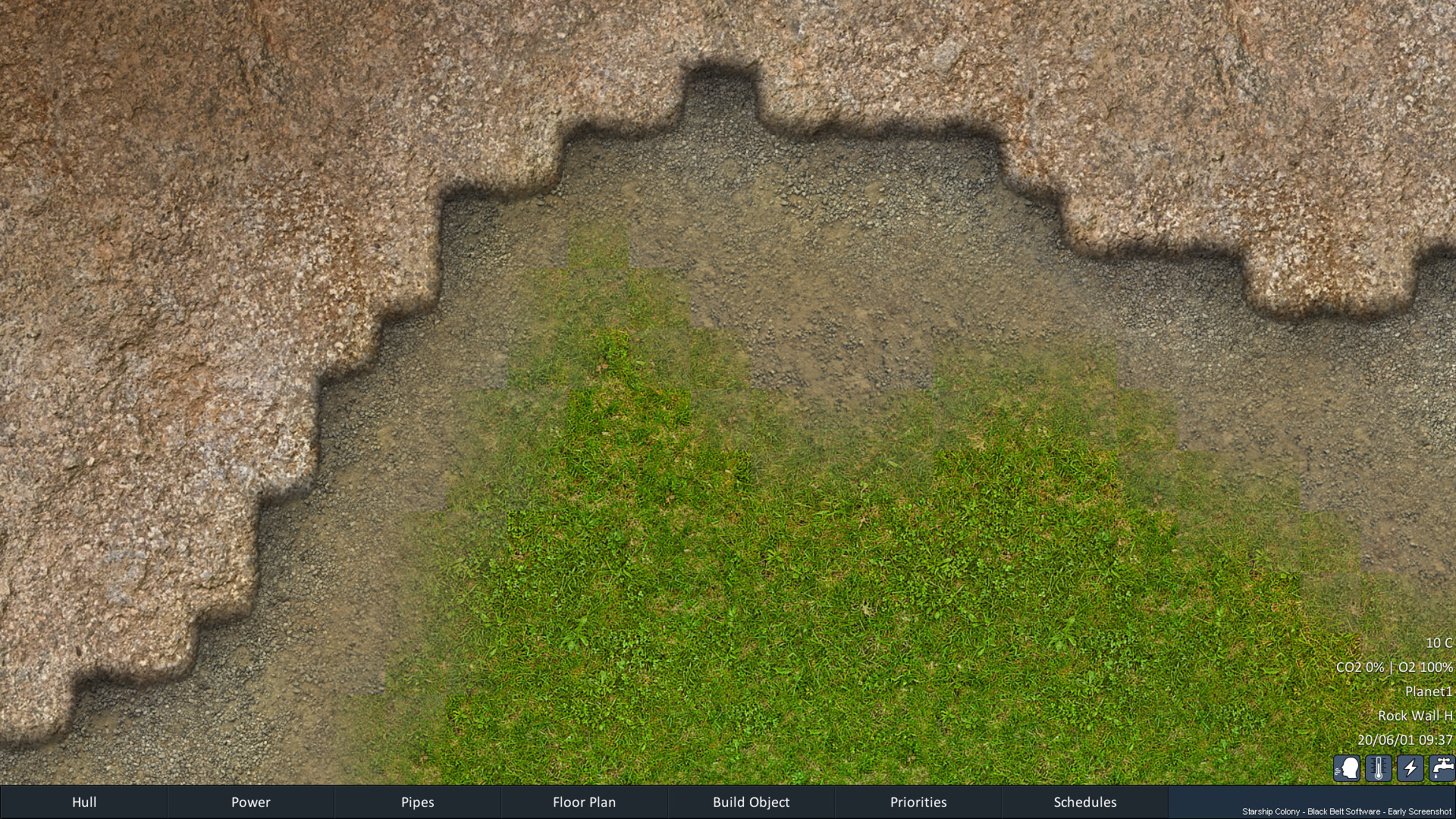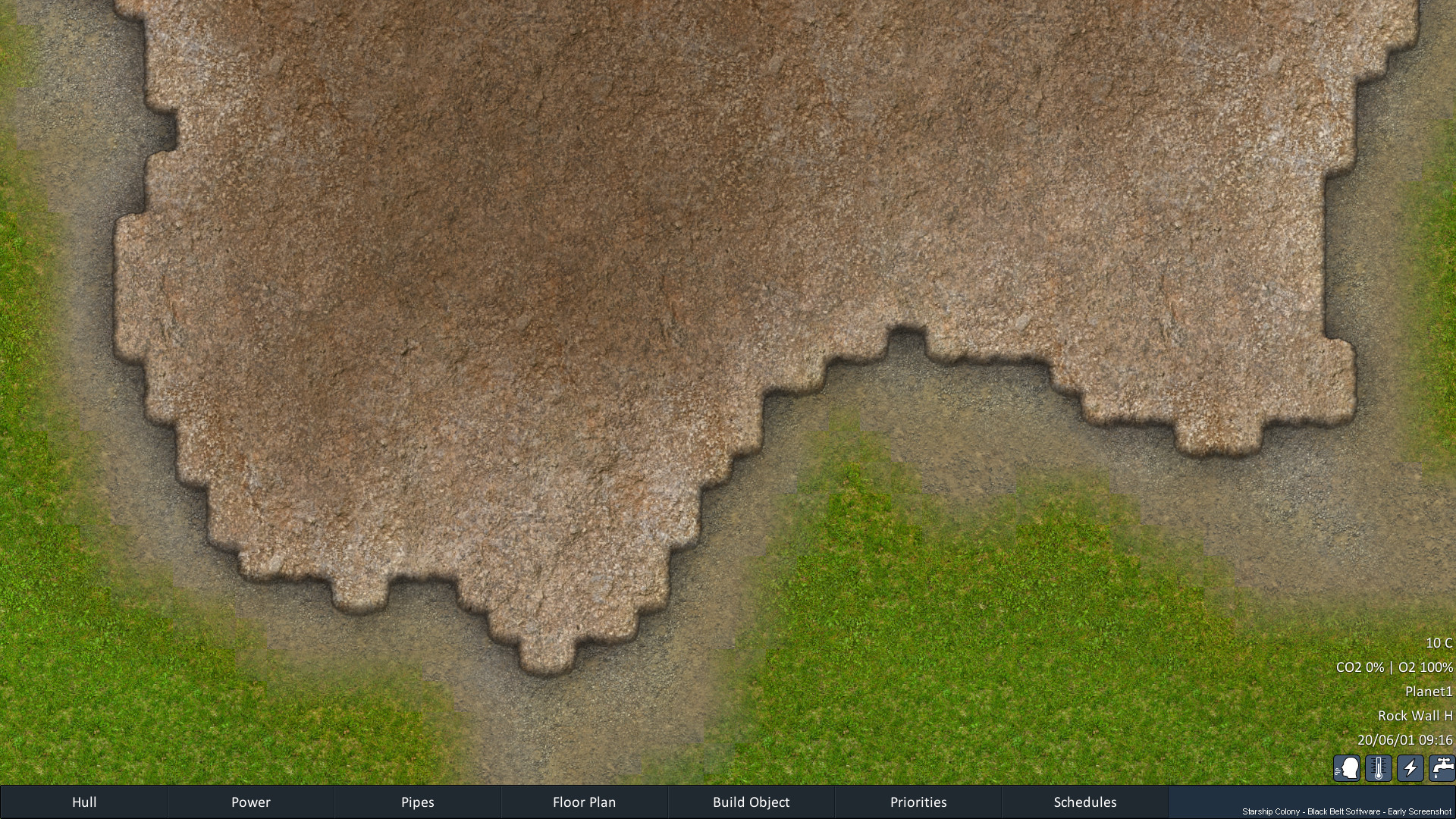 I'm really pleased to post about the game I'm working on - 'Starship Colony'. As the title suggests it's a starship colony sim, with an emphasis on survival in space, your ship's systems, and crew. Build your ideal starship, manage air, water, food, fuel, energy, temperature and psychology to keep your crew alive across the vast interstellar distances. Living in space is hard! Your ship is a closed-loop system in space where recycling everything is critical, at least until you reach the next asteroid or planet. There will be mining, wiring, plumbing, in-ship factory production, (alien?) radio signals decoding and translation of languages, factions, diplomacy, trade, combat, and much more planned.